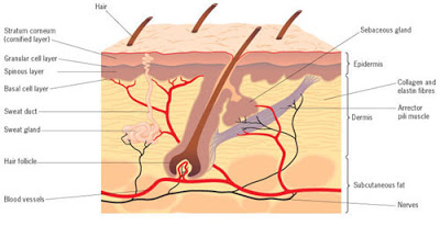 اذا أخذنا قطاعا طوليا من الجلد، سنجد أنه يتكون من ثلاثة طبقات أساسية: البشرة، والأدمة، وطبقة ما تحت الأدمة. وسنتحدث عن كل واحدة منهم على حدى.