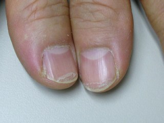 • تُغسل اليد بماء دافئ قبل قصها لتصبح لينة بعض الشئ مما يسهل عملية القص. هذه الخطوة مهمة لمنع انشقاق الظفر لطبقات كما في الصورة التالية: