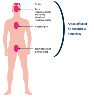 الأماكن التي تتأثر بهذه المشكلة هي الأماكن التي تكثر فيها الغدد الزيتية بالبشرة مثل: فروة الرأس، الحواجب، الجفون، حول الفم، الشنب والذقن، خلف الأذن، الرقبة، الابط والسرة وغيرهم. كما أنها قد تتسبب في في سقوط الشعر ولكن الشعر عادة ما يعود لطبيعته بعد علاج الالتهاب.